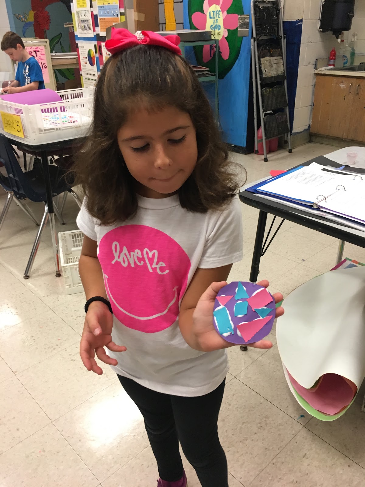 After reading Peter Reynold’s book, The Dot, students worked on an original work of art for our “Dot Day” display. Students were able to use materials from the drawing center, collage center or painting center to design their piece. They were also able to add some materials from the fibers center. Once complete, they were able to select activities from the Dot Day menu board to keep the fun and creativity flowing!